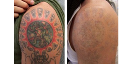 Laser Plus Spa uses a formulated numbing cream with the Palomar Q-Yag Switch System to remove tattoos comfortably and safely. Proven for over 10 years, the Q-Yag System is the most widely used device to remove the different kinds of inks used in tattoos, including hard to treat opaque inks. The Q-Yag System sends out a highly-focused beam of laser light. This light passes harmlessly through the outer layer of your skin and is absorbed by the tattoo ink.*