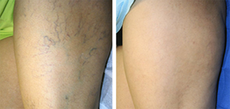 Remove all types of spider veins and broken capillaries with our new advanced laser treatment. This treatment uses the Palomar Lux 1064 to help treat unsightly blood vessels and spider veins in a way that enables them to slowly fade and become naturally absorbed by the body.*